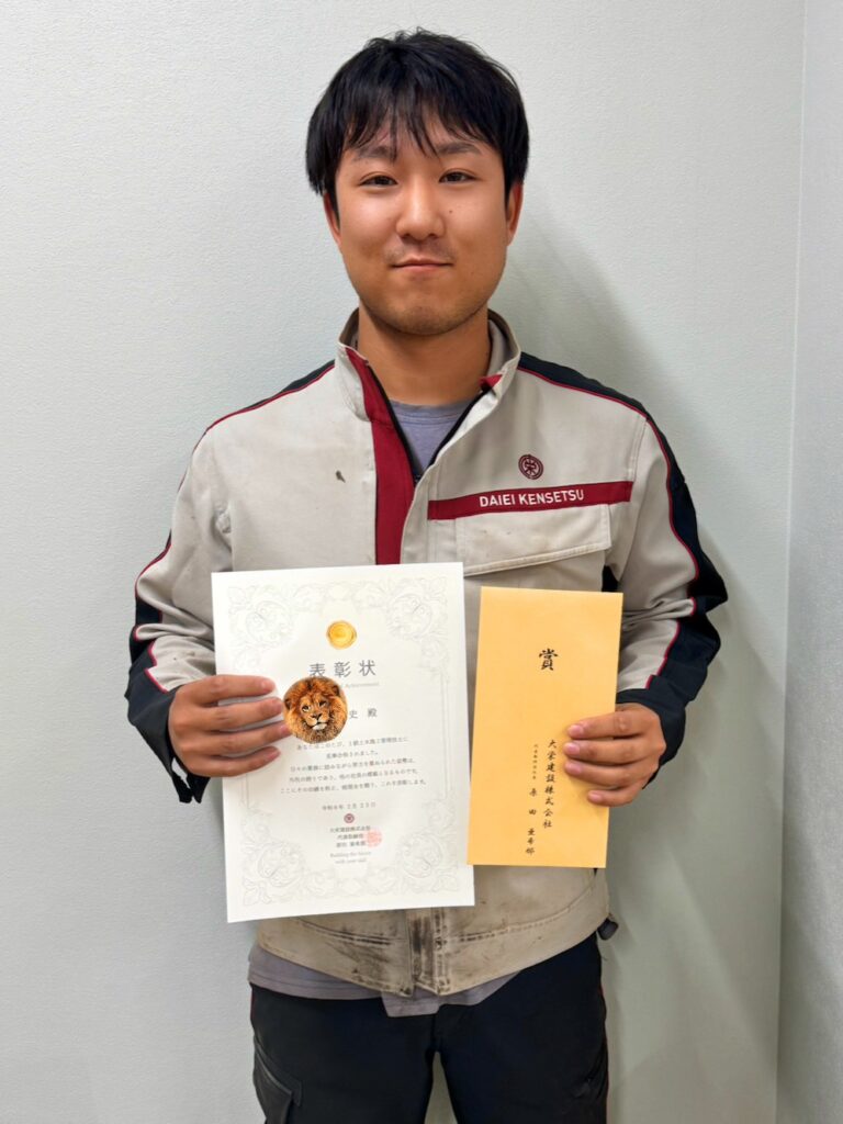当日は陸が現場業務のため帰社できず、直接表彰を行えたのは智史のみとなりましたが、